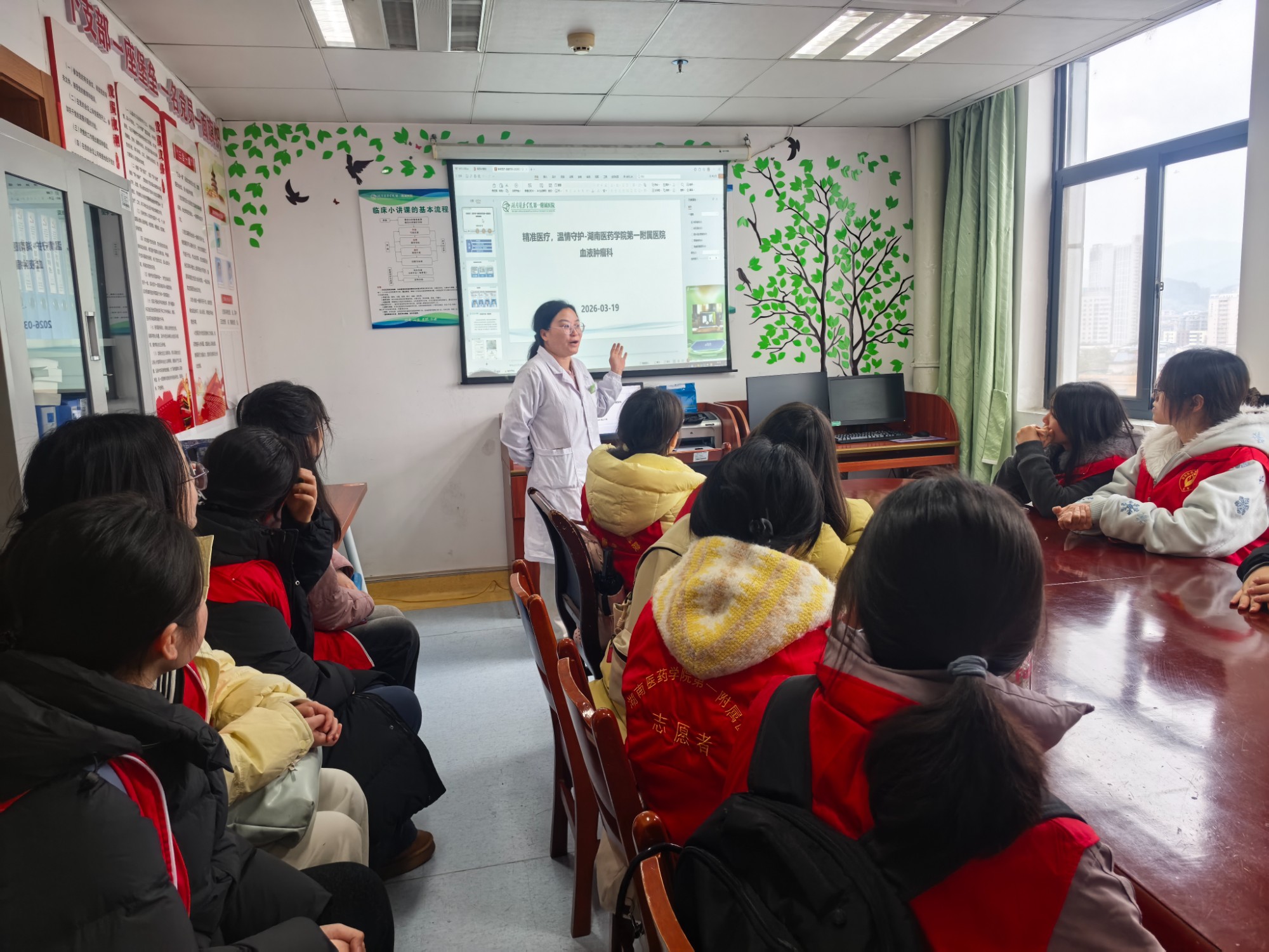 随后,师生一行前往诚信楼10楼血液肿瘤科。杨丽娟医师结合临床检查报告,系统分析不同类型白血病诊断逻辑与领域最新进展,让同学们对该疾病的认知更加全面。她还勉励学子们珍惜在校时光,夯实专业基础知识,成长为可堪大任的新时代医学人才。